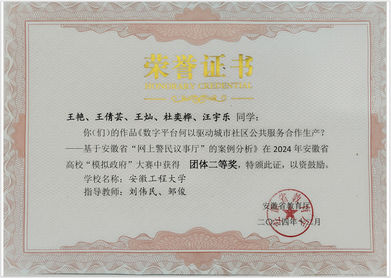 安徽省大学生学习马克思主义理论成果大赛二等奖