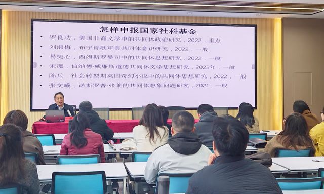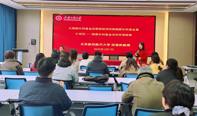 报告会上,田俊武教授从文学经典出发,借古喻今,讲述了国家社科基金的重要性。,接着,从国家社科基金的选题研判、跨学科视野的培养、学术风向标的研究以及申报流程的全关注等多方面详细阐述了国家社科基金申报技巧,指出申报重大项目要善于“前期冲锋,中期夺标,后期殿后”,并倡导教师要将国家社科基金申报工作作为开展科学研究的工作日常工作。