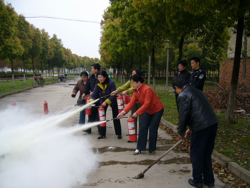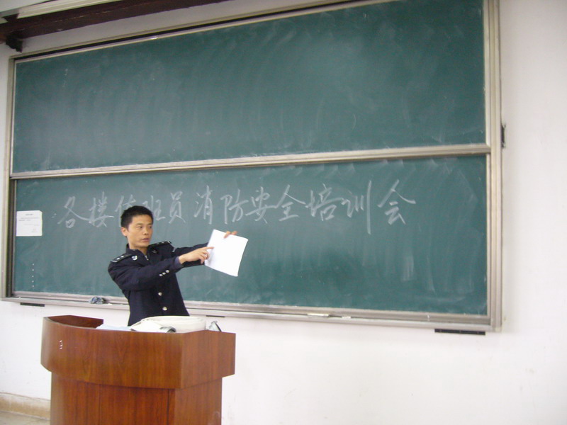 4月13、14日保卫处、后勤集团联合分两次对学校学生宿舍楼、教学楼、实验楼等各楼值班员进行了消防安全培训。培训内容包括:保卫处副处长邬海量介绍2010年元月1日开始实施的《高等学校消防安全管理规定》的相关要求,传达学校消防安全会议精神,并结合我校的消防安全管理的实际对各楼值班员提出工作要求;保卫处消防管理员李岗讲解《消防设施检查情况登记表》、《月度消防设施统计表》的填写要求和消防器材的检查方法以及初期火情的处置方法和火灾逃生的注意事项,并演示了消防栓和灭火器的使用方法。最后,女生宿舍的值班员和新上岗的值班员进行了消防栓和灭火器的实战演练。