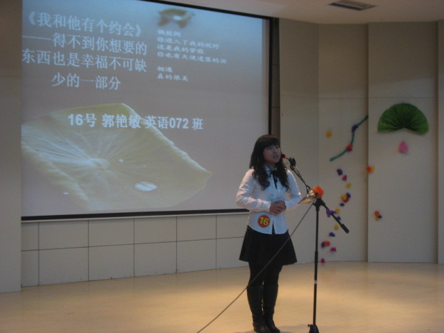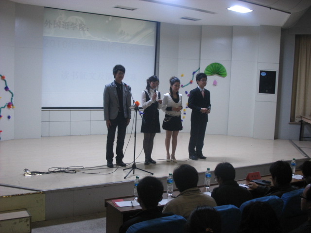 出席此次比赛的有外语系党总支副书记谈丽华、团总支书记李烨及各辅导员,并特邀校图书馆副研究员章靖平作为点评嘉宾。比赛中,选手各展风采,或热情洋溢,描绘书香飘逸的书海;或妙语连珠,感悟读书旅途的雅趣;或字句铿锵,评析名著思想的深刻,精彩的演讲深深地感染了在场的每一位观众,不时博得一阵阵热烈的掌声。