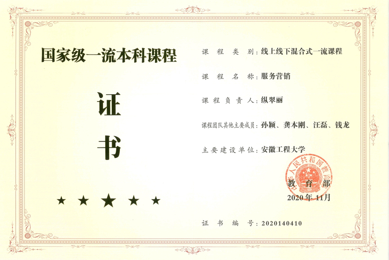 纵翠丽老师长期从事“OTO”线上线下混合式教学模式改革研究,通过“目标层级切分、内容结构重塑、教学多维互动、四轮并驱培养、课程思政引航”等多项教学创新举措,有效克服了市场营销专业课程中的教学痛点和难点问题,特色鲜明,成果显著,主持申报的“混合式教学理念下市场营销专业课教学创新”成果获得安徽省教学成果奖二等奖,主讲课程《服务营销》获批省级智慧课堂试点项目,此课程也被认定为首批国家级线上线下混合式一流本科课程。